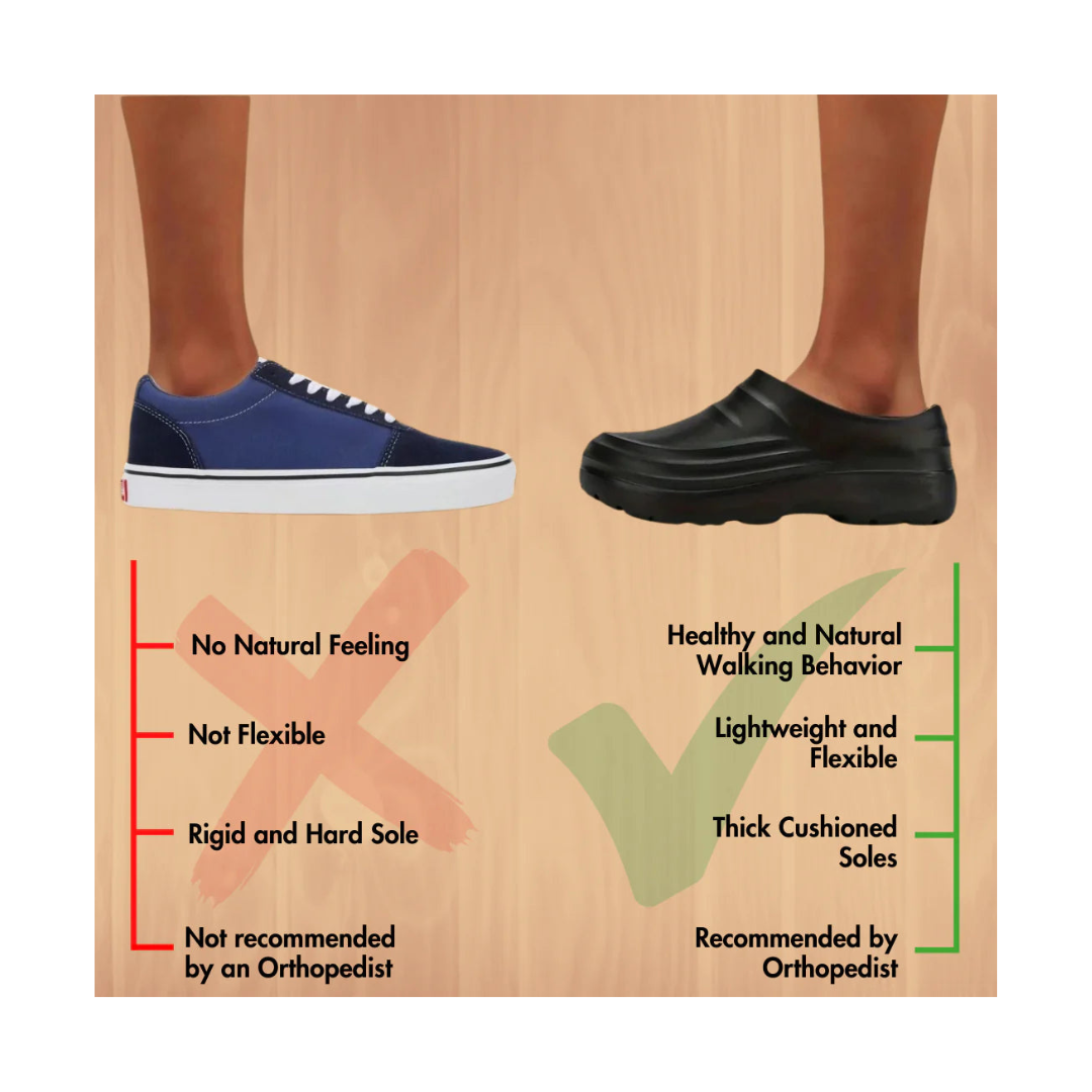 With Fomiee Clogs, you're choosing comfort, healthier feet, and a walking experience that feels truly natural. Imagine walking on clouds - while still getting the protection and support your feet need. Designed with foot wellness at the forefront, our clogs provide generous room for airflow and natural toe movement, the way your feet were meant to function. They also work to strengthen your arches, improve flexibility, and promote proper body alignment for better stability and balance.